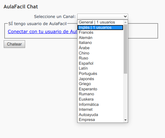 Script heredado de «Blueimp’s Ajax Chat» que ha sido modificado para poder ser integrado con el sistema de autenticación propio de aulafacil.com, así como readaptando el sistema de canales para que los alumnos sólo pueda participar en los canales de conversación cuya materia está estudiando.