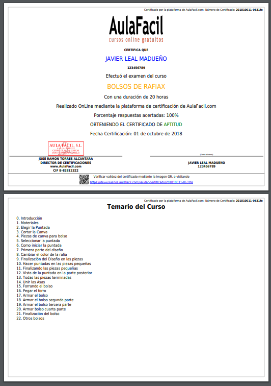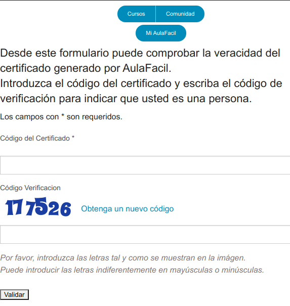 Sistema completamente personalizado para la gestión y realización de certificados para los cursos de aulafacil.com